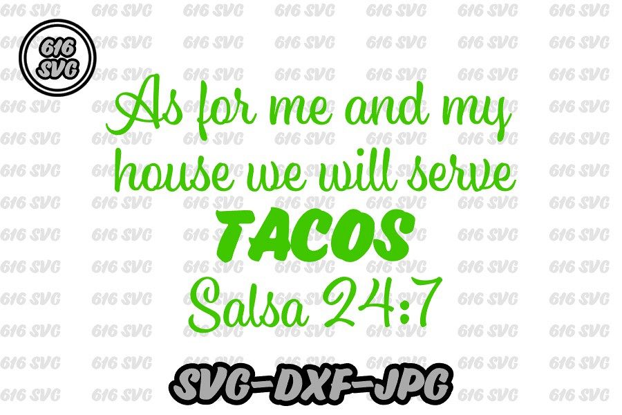 As for me and my house we will serve tacos  Salsa 24:7 SVG. Perfect for sign making or a wall decal