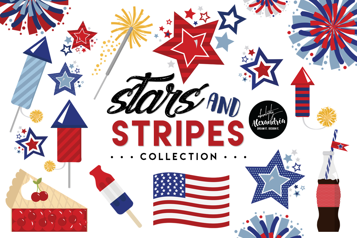 Stars & Stripes Clipart Graphics & Digital Paper Patterns Bundle example image 1
