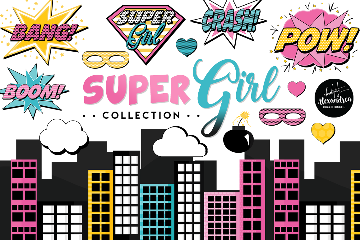 Super Girl Clipart Graphics & Digital Paper Patterns Bundle
