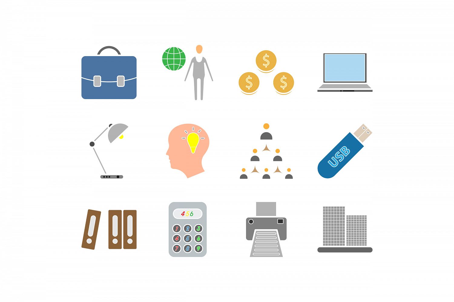 Business Set Computer Icon Office Presentation Vector People Businessman Document
