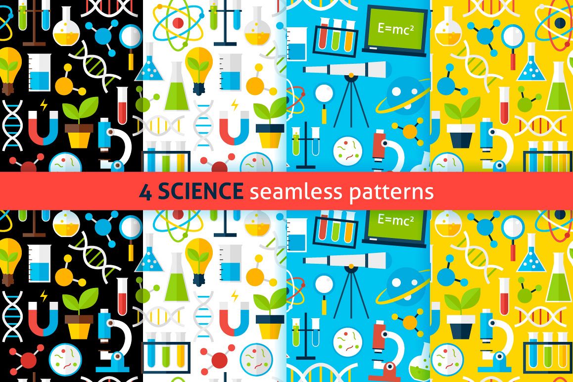 • 4 Science Flat Seamless Patterns over different backgrounds.