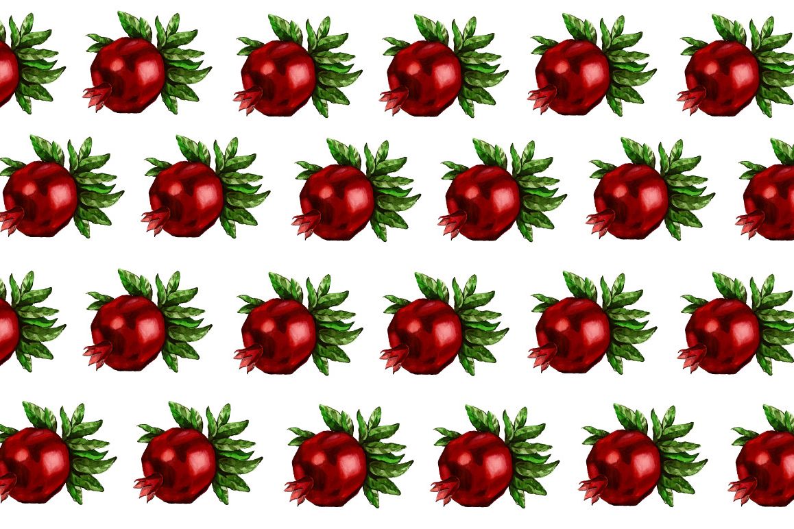 Watercolor Autumn Illustration Pattern Painting Sweet Fresh Red Pomegranate Ripe