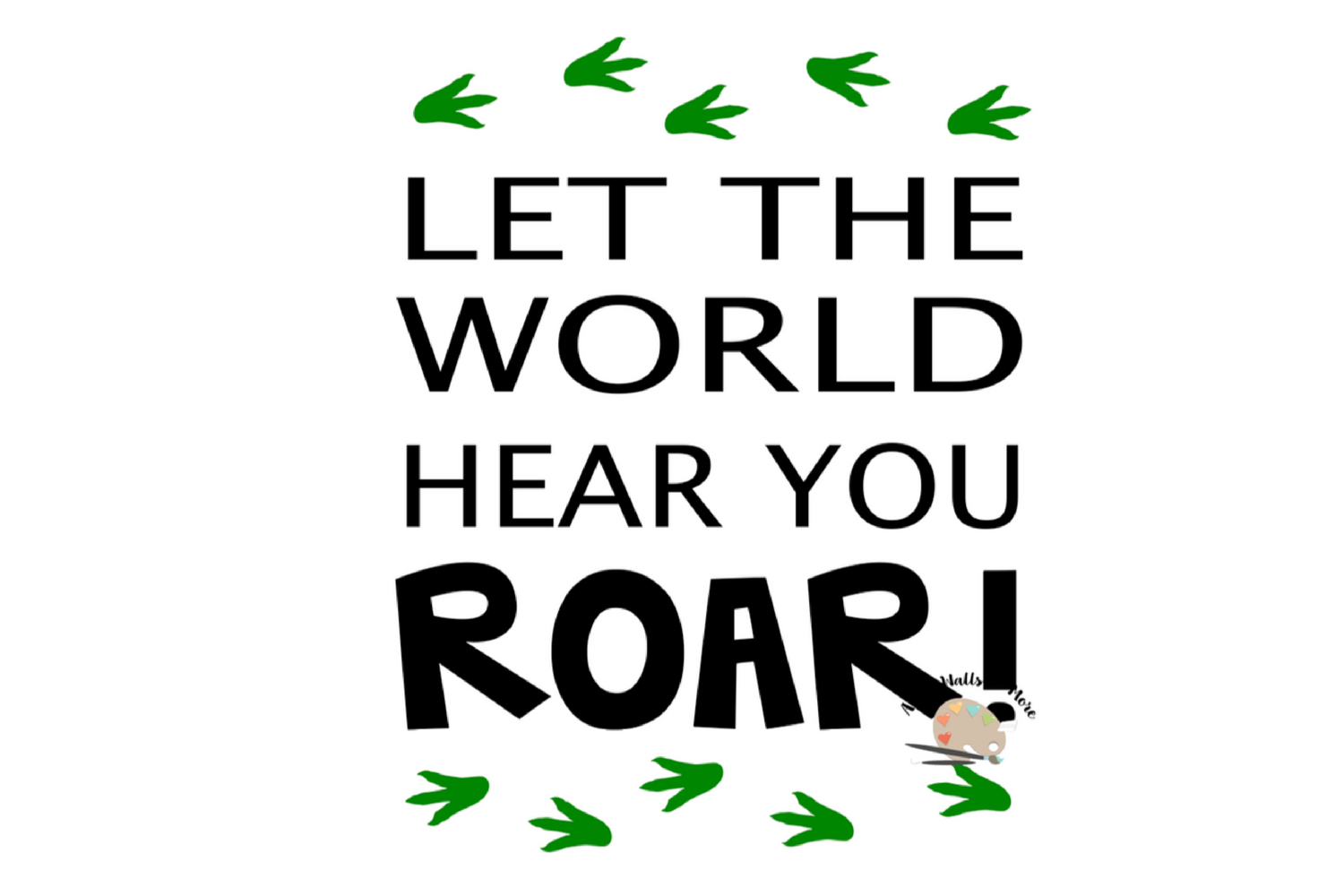 SVG, Digital download cut file, "Let the World Hear you ROAR" (with dinosaur prints/tracks).  --This file is a great one for making a wall decal or a shirt or onesie for a boy or baby boy on his birthday or any occasion.