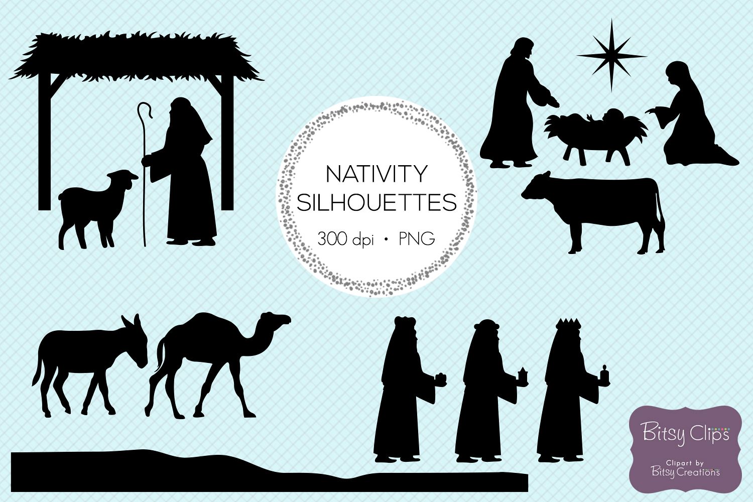 Christmas Nativity Silhouettes Digital Art Set Clipart example image 1