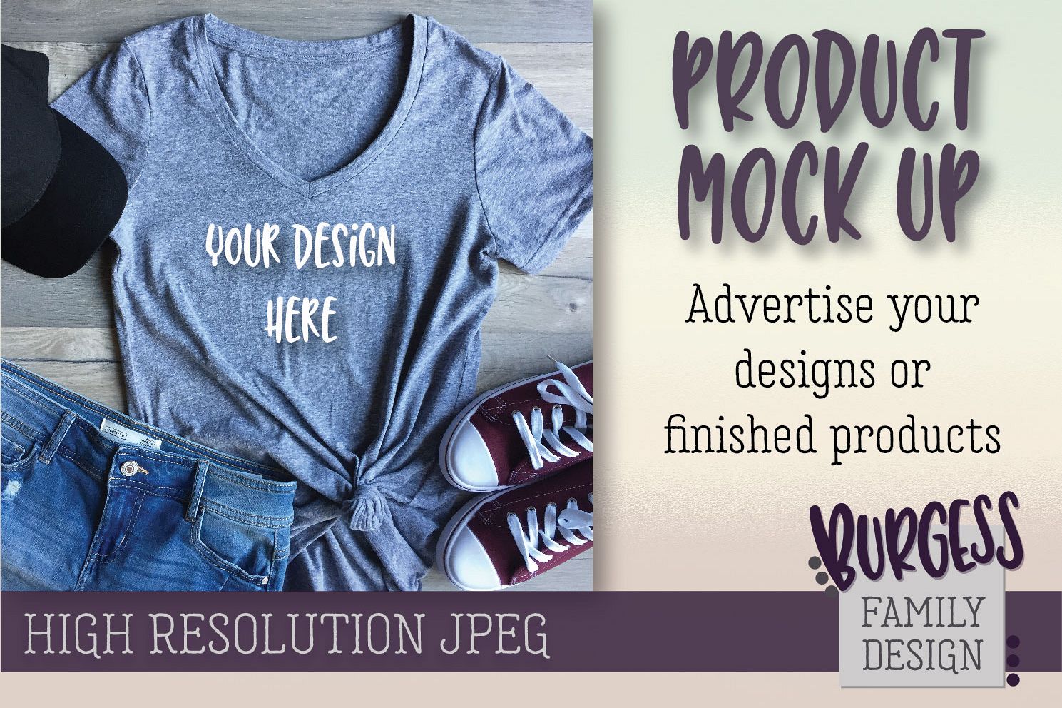 Do you sell your own clothing or create your own designs? Easily present them to your customers without creating products that may or may not sell. Use this mockup, add a PNG of your design and you’re ready to market your products!