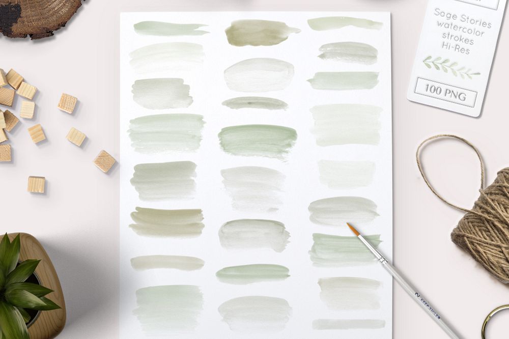 A huge set of 100 PNG images. 25 Different paint strokes in 4 colors. Great for adding a painted texture or use them for branding, scrapbooking, making cards etc. This set is in the 'Sage Stories' palette. You can find matching graphics in the shop.