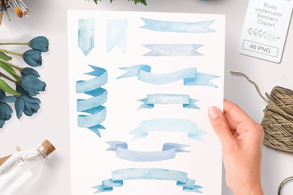 Similar Design Products to watercolor banner clipart blue graphics - 40 PNG