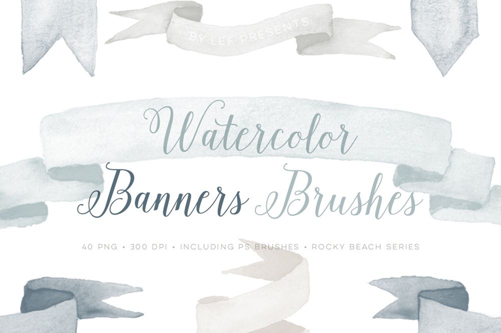 Watercolor Banners and Ribbons Photoshop Brushes.