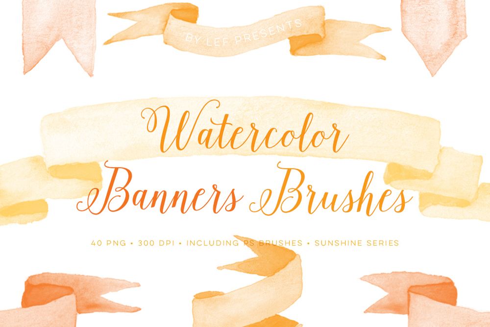 Watercolor Banners and Ribbons Photoshop Brushes.