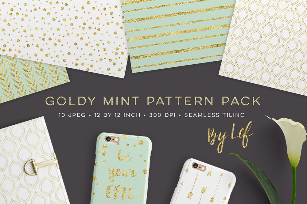 Digital Paper Pack in Gold and Mint - Seamless patterns example image 1