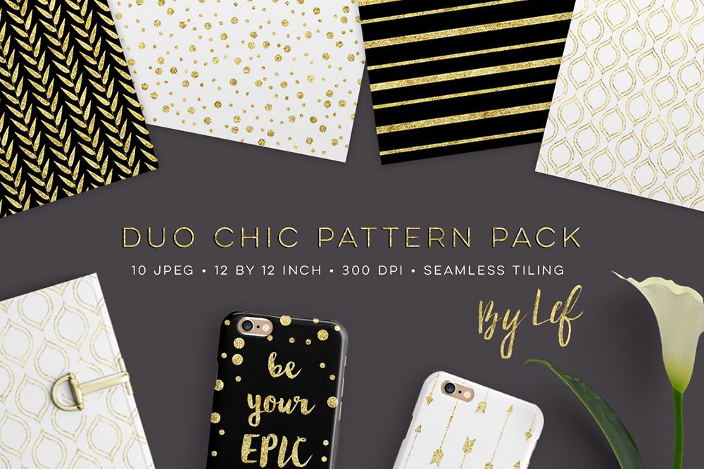 Similar Design Products to Digital Paper Pack Black White Gold - seamless patterns