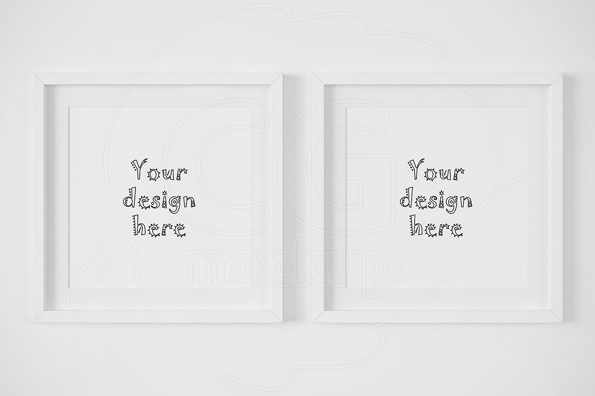 Two white matted square frame mockup example image 1