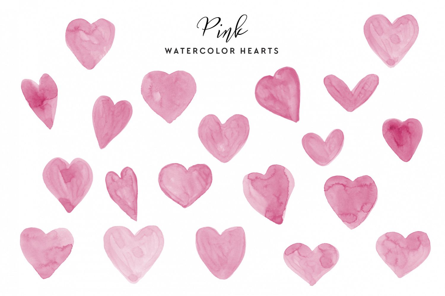 Pink Watercolor Hearts - set of 20 handpainted hearts example image 1