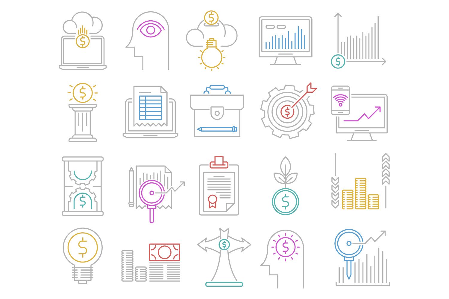 Analytics and investment icons set