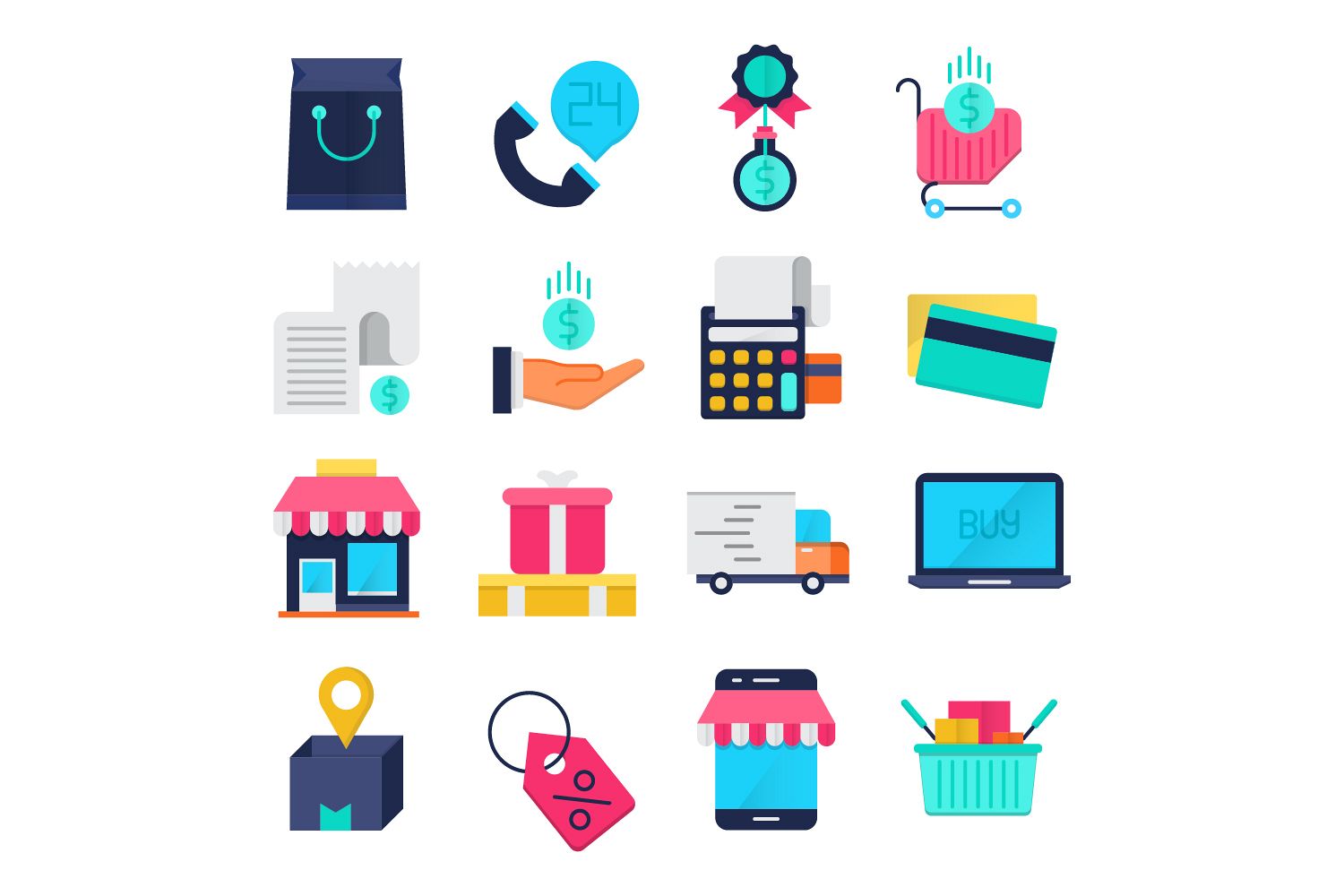 Commerce flat icons set example image 1
