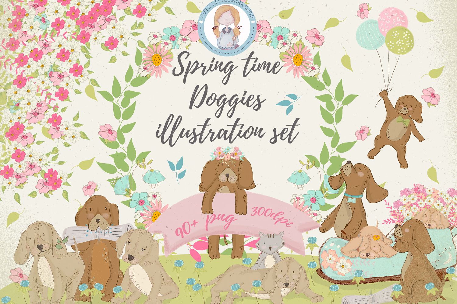 Spring time Doggies illustration set