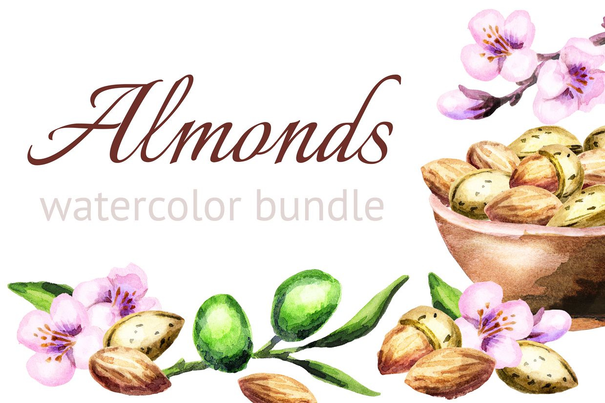 Almond Watercolor Almond Oil Oil Butter Almond Paste Lmond Milk Isolated Food