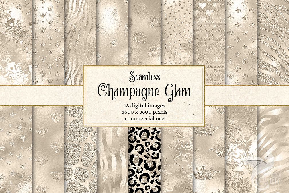 Champagne Glam Digital Paper Wedding Glitter Sparkle Foil Pearl Textures Seamless
