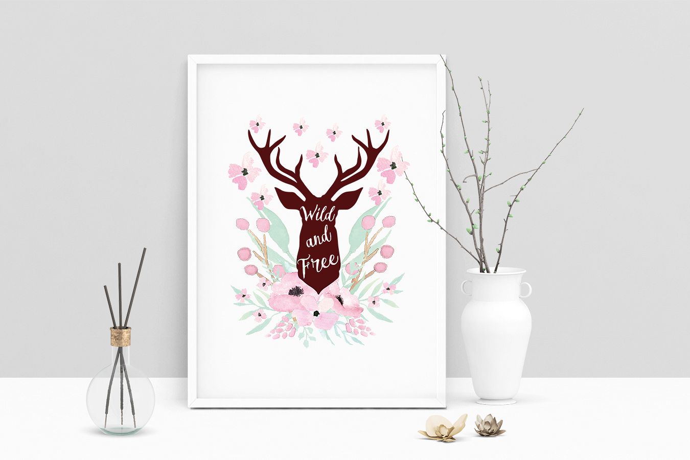 Similar Design Products to Printable Art Saying Wild And Free Deer Head, Wall Art, .PDF