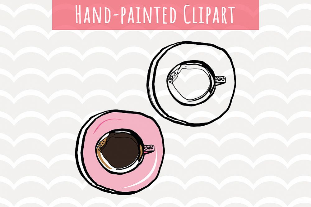 Coffee Clip Art Hand painted digital printable instant download, Coffee Cups, Coffee Mugs, Latte, Espresso, JPG, PNG, DXF, SVG, CDR, EPS, AI: