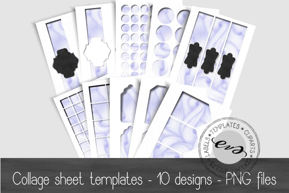 A collection of 10 design template PNG files for creating collage sheets, labels, gift tags, jewellery patterns or other craft items to print.