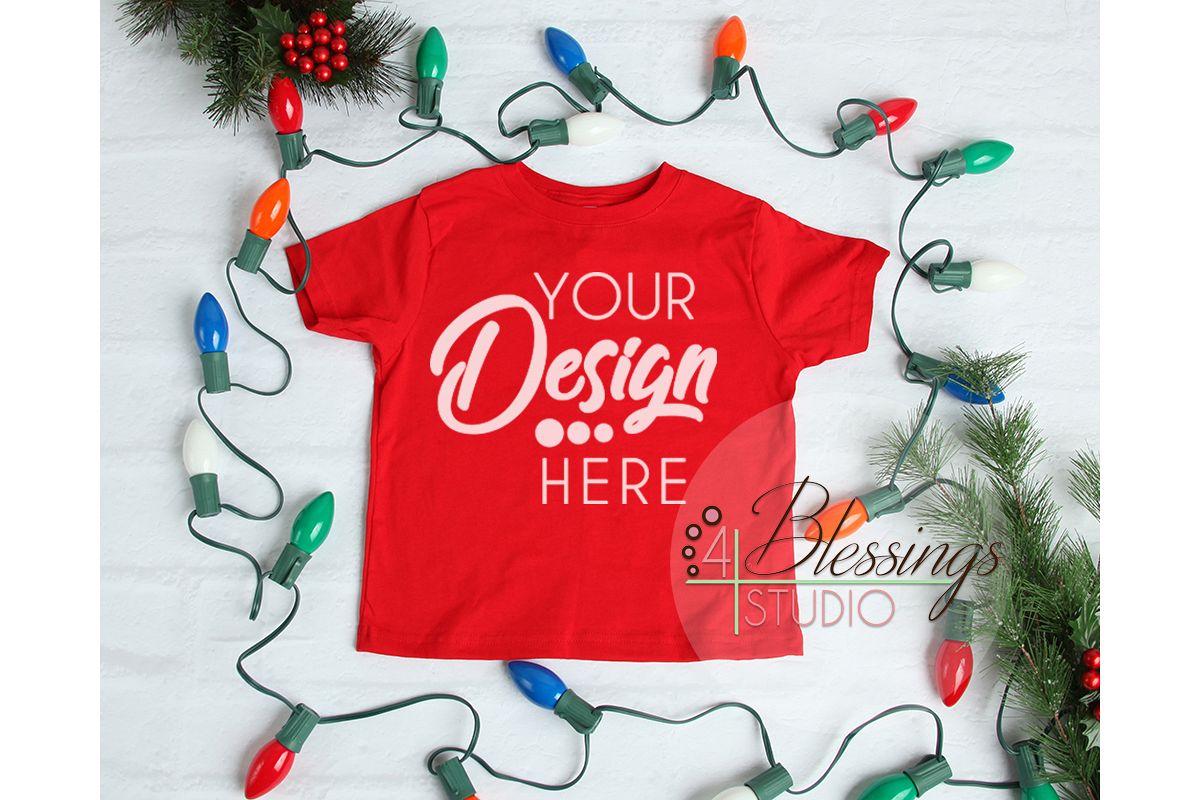 Christmas Kids Shirt Mockup Red Childrens Flat Lay Winter