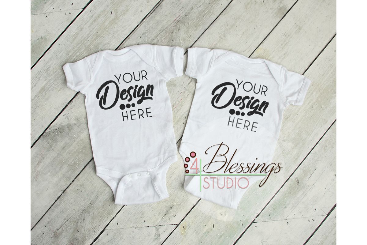 Two Blank White Baby Bodysuits Shirt Mockup Twin Mock up example image 1