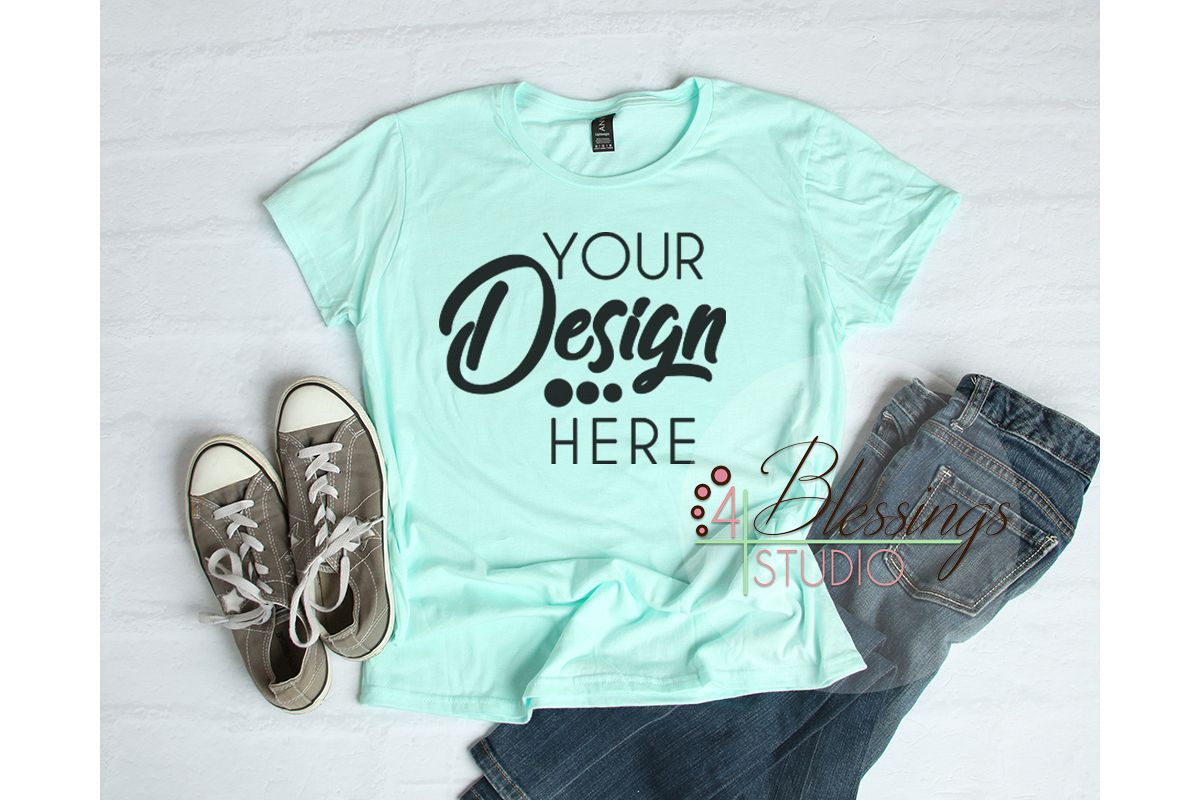 Anvil Tshirt Mockup 880 Women's Shirt Mockup Teal Ice Shirt