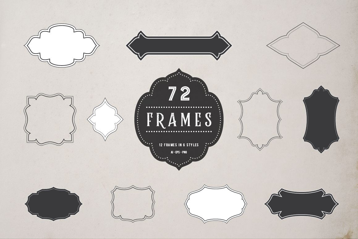 **Set of 72 vintage frames!** 12 different frames in 6 styles. Use these simple and elegant vintage frames to create your own unique designs.
