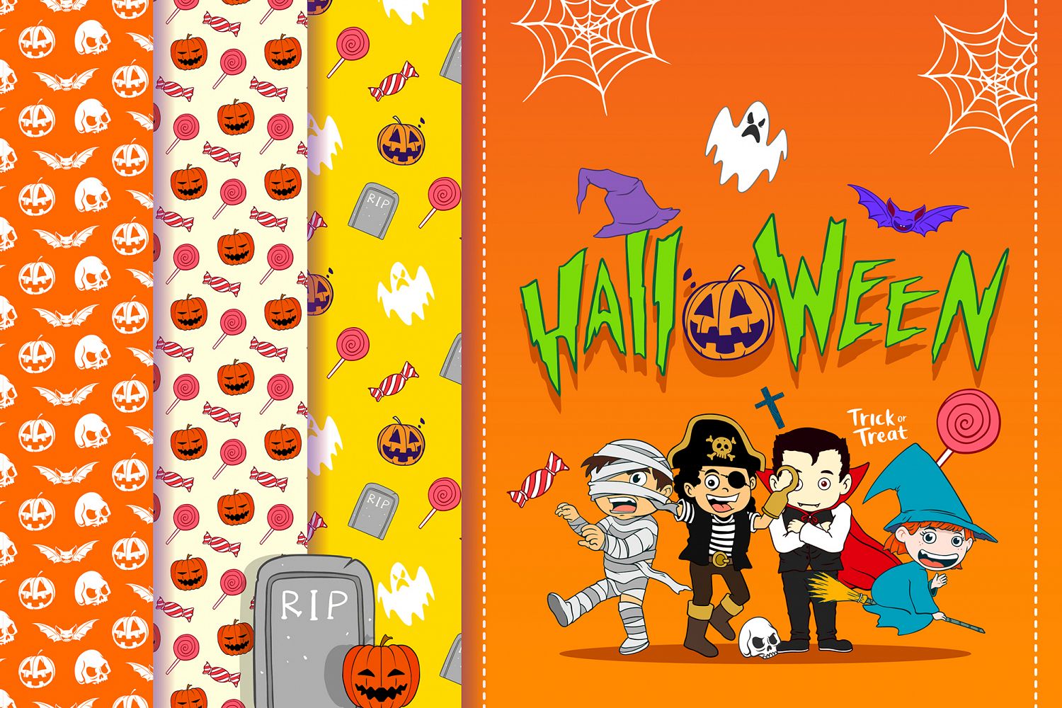 Vector Set Clipart Pattern Seamless Pattern Pumpkins Skull Boo Costume Mummy