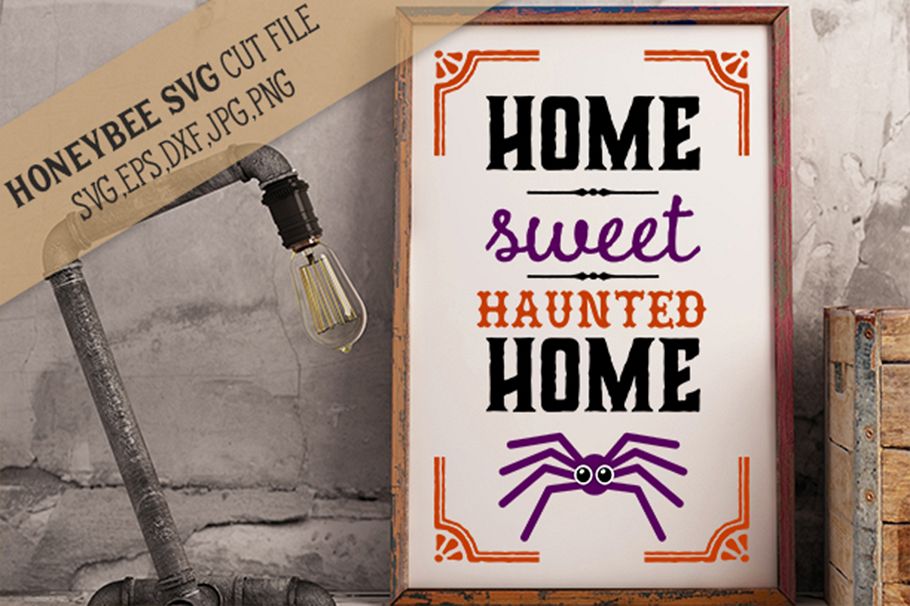 HoneybeeSVG Home Sweet Haunted Home cut file and Printable. This is an SVG, DXF, EPS, PNG and JPEG digital download cutting file, which can be imported to a number of paper crafting programs.