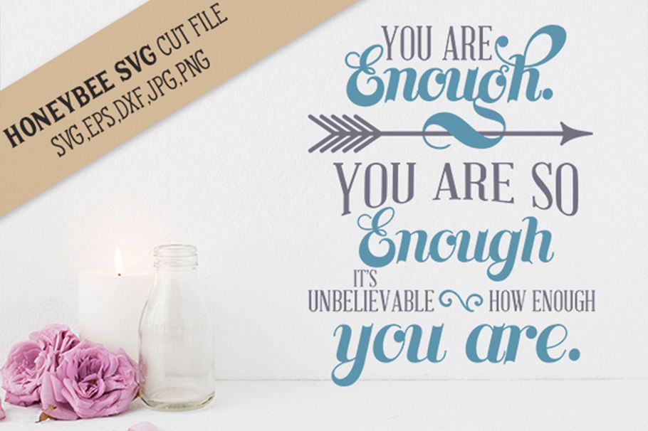 HoneybeeSVG You are Enough cut file. This is a SVG, DXF, EPS,PNG and JPEG digital download cutting file, which can be imported to a number of paper crafting programs.