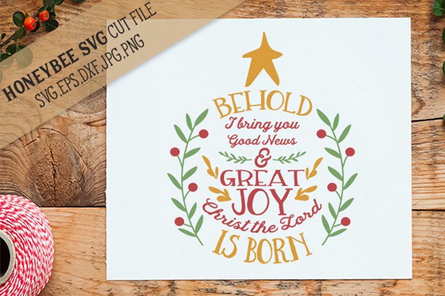 HoneybeeSVG Behold Christ is Born Farmhouse Christmas SVG cut file for Silhouette and Cricut type cutting machines. This is a SVG, DXF, EPS, PNG and JPEG digital download cutting file, which can be imported to a number of paper crafting programs.