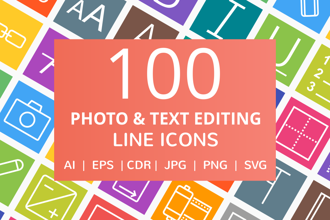 This set includes Photo and Text Editing line multicolor b/g icons. With 100 icons, Iconbunny provides the most essential icons which can be used on all types of platforms including mobile apps, web and graphic design. Each icon is available in different file formats to cover all your needs.