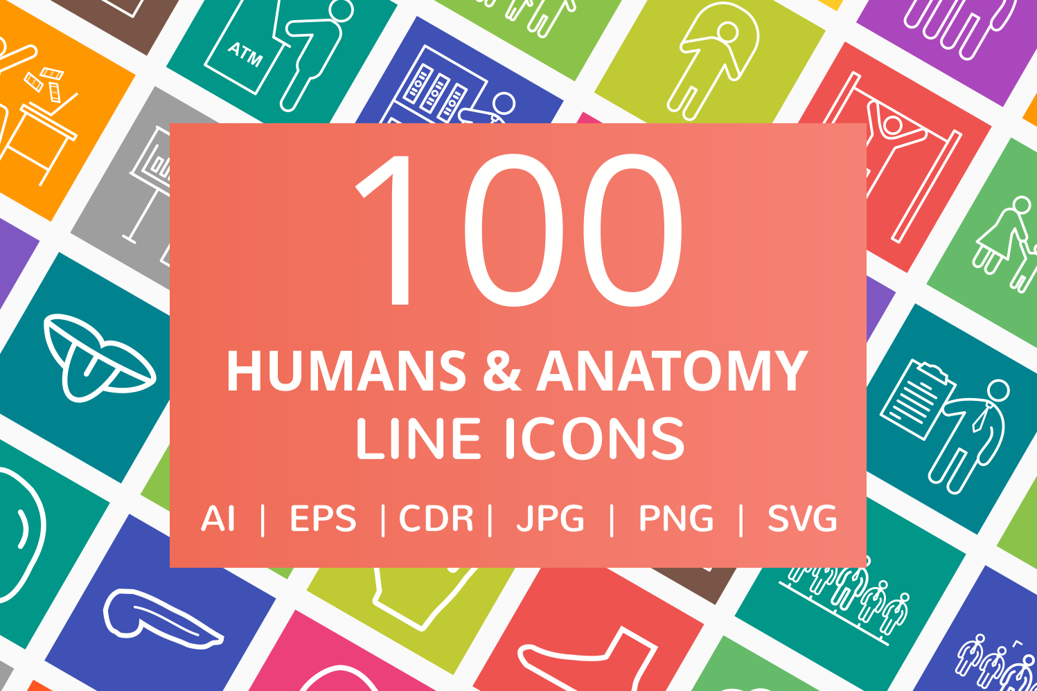 This set includes Human Anatomy and Humans line multicolor b/g icons. With 100 icons, Iconbunny provides the most essential icons which can be used on all types of platforms including mobile apps, web and graphic design. Each icon is available in different file formats to cover all your needs.