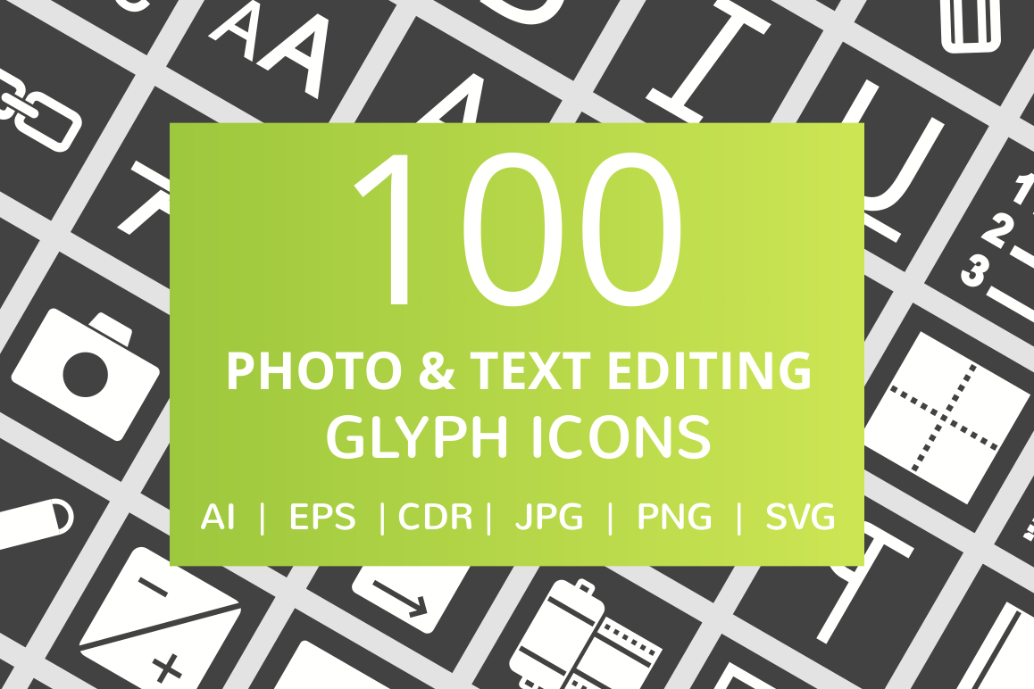 This set includes Photo and Text Editing Glyph inverted icons. With 100 icons, Iconbunny provides the most essential icons which can be used on all types of platforms including mobile apps, web and graphic design. Each icon is available in different file formats to cover all your needs.