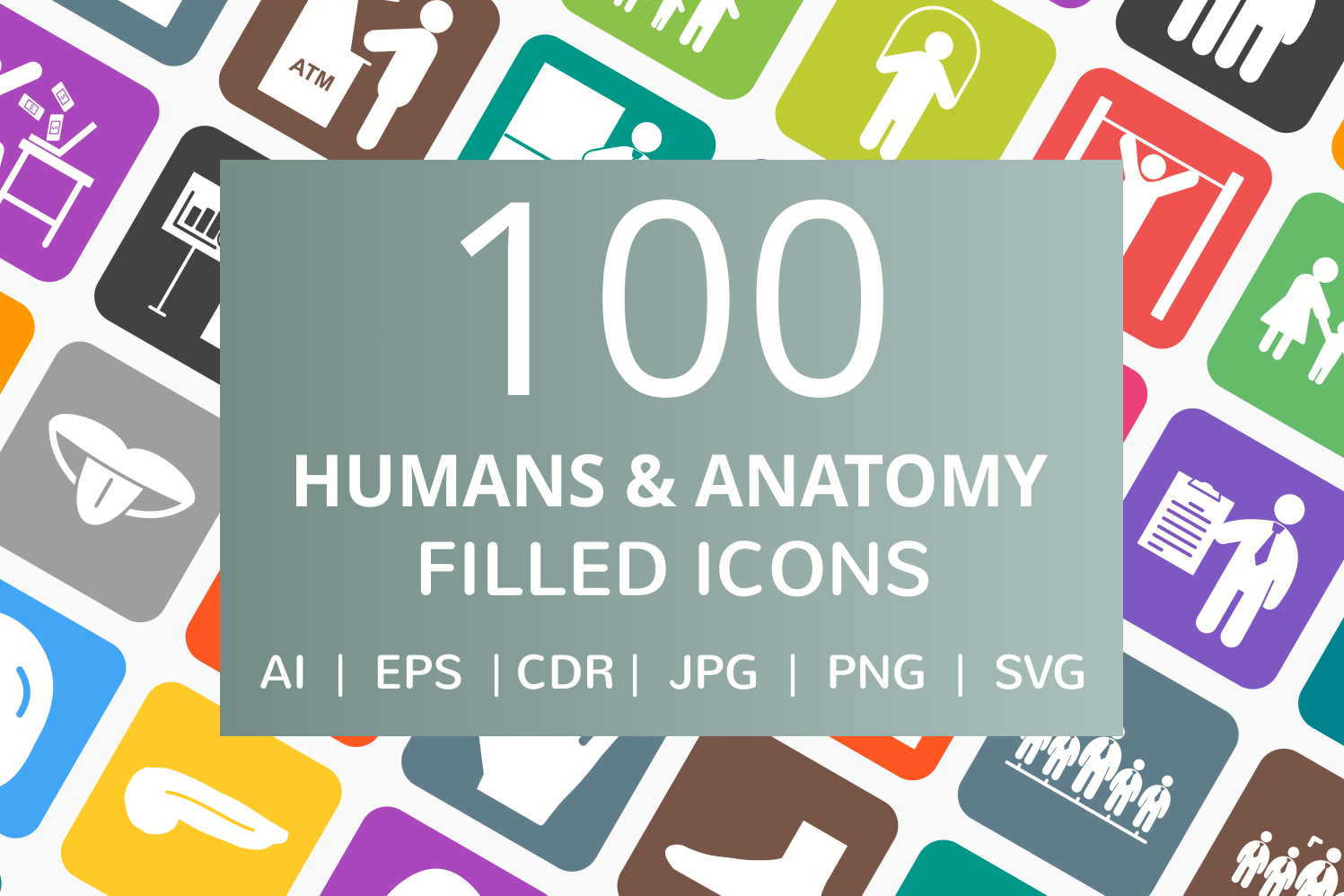 This set includes Human Anatomy and Humans filled round corner icons. With 100 icons, Iconbunny provides the most essential icons which can be used on all types of platforms including mobile apps, web and graphic design. Each icon is available in different file formats to cover all your needs.