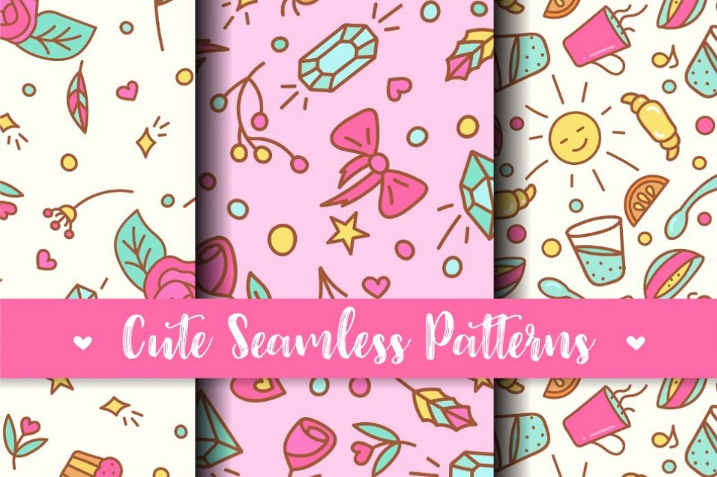 Set of 3 cute seamless patterns in line style.  Perfect for stationary, invitations, blog elements and digital scrapbooking. Also great as prints for kids products