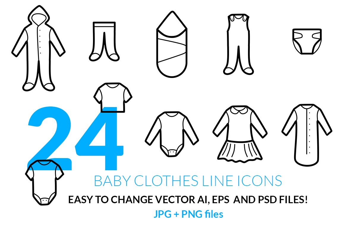 24 Baby Clothes Line Icons Set: