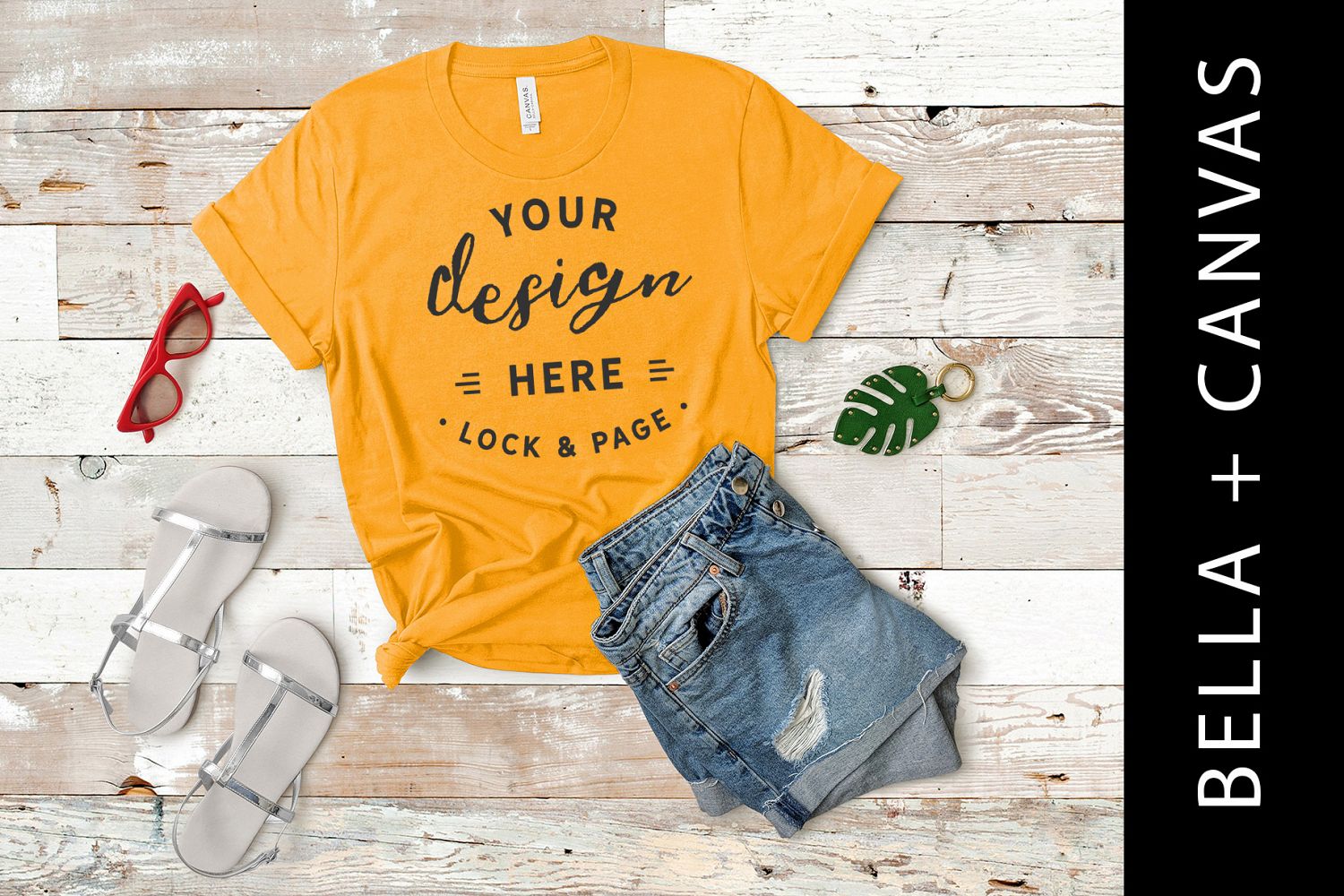 Gold T Shirt Mockup Bella Canvas 3001 Girls Fashion Flat Lay example image 1