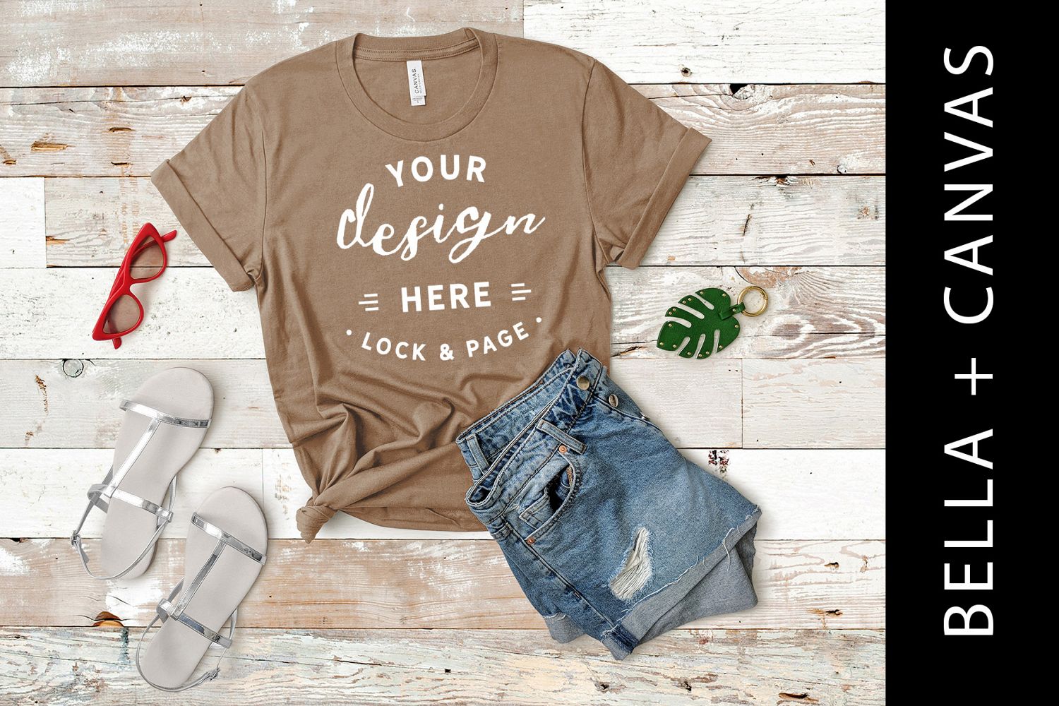 Pebble Brown Bella Canvas T Shirt Mockup Ladies Flat Lay example image 1
