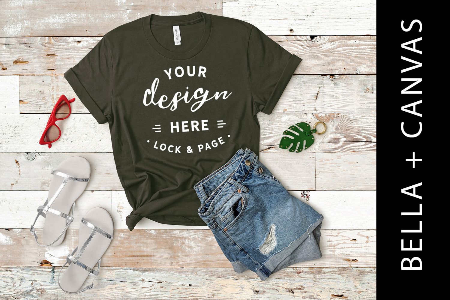 Army Bella Canvas 3001 T Shirt Mockup Natural Flat Lay example image 1