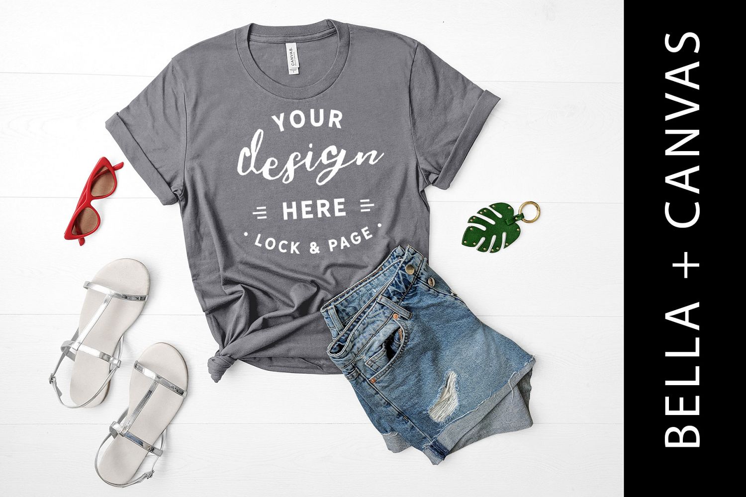 Storm T Shirt Mockup Bella Canvas 3001 Ladies Flat Lay example image 1