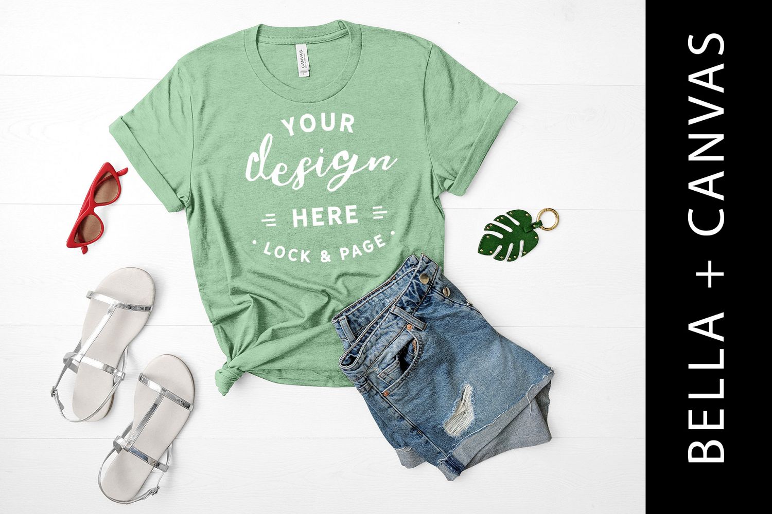 Heather Prism Mint Bella Canvas 3001 T Shirt Mockup example image 1