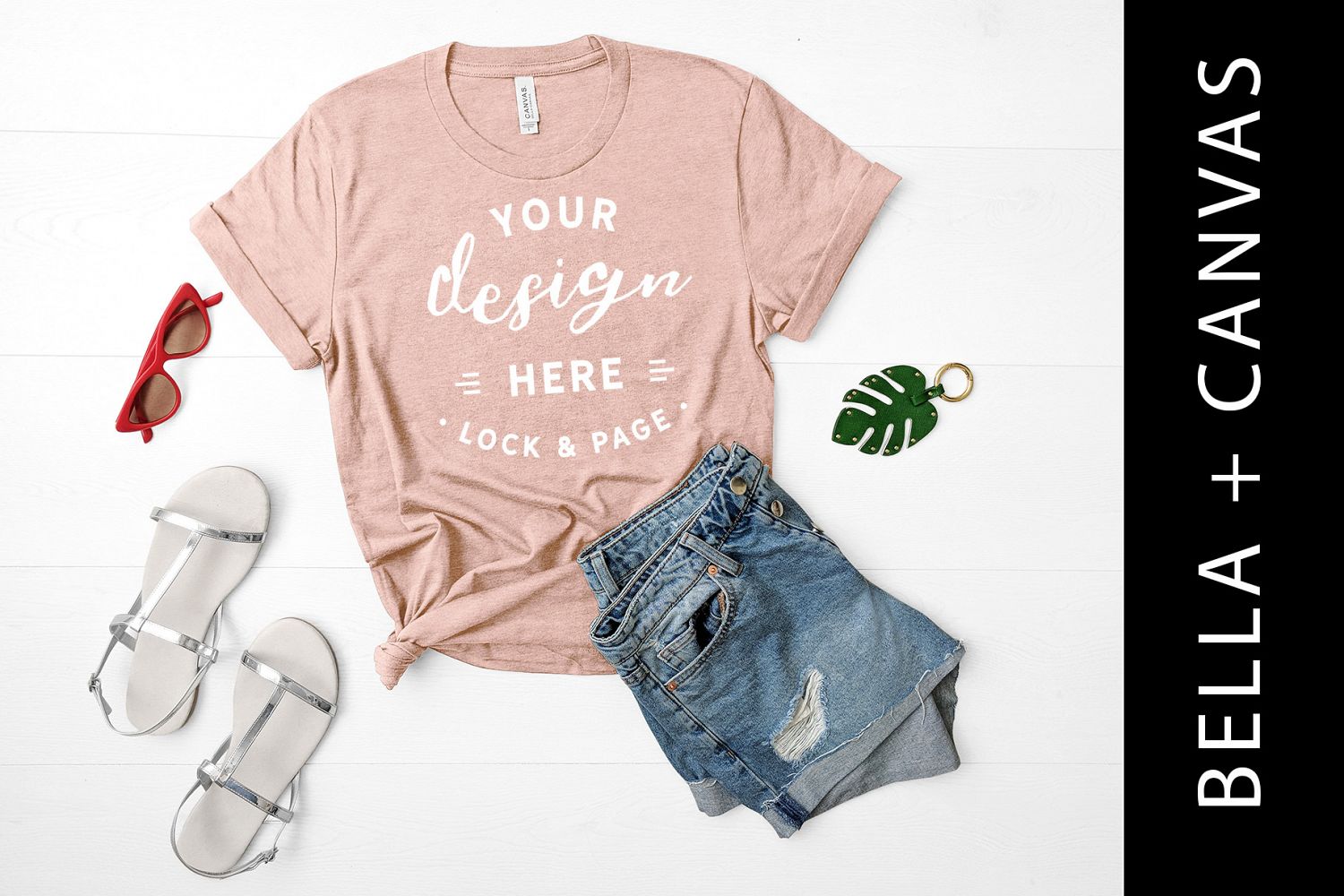 Heather Prism Peach T Shirt Mockup Bella Canvas 3001 example image 1