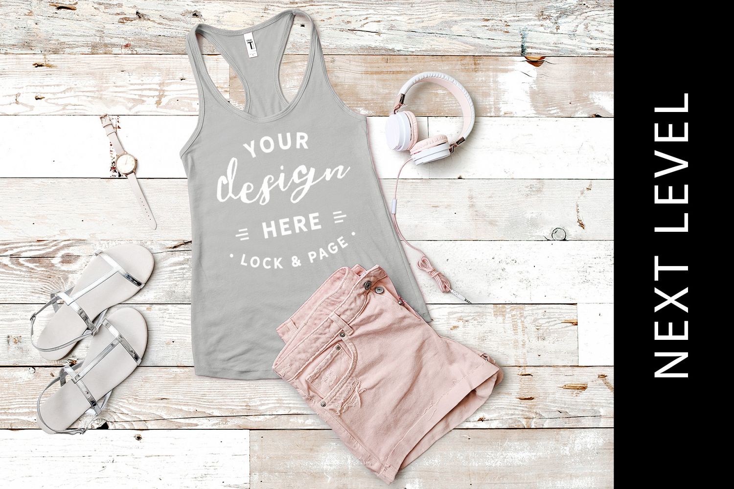 Silver Next Level 1533 Tank Top Mockup Gym Apparel Flat Lay example image 1