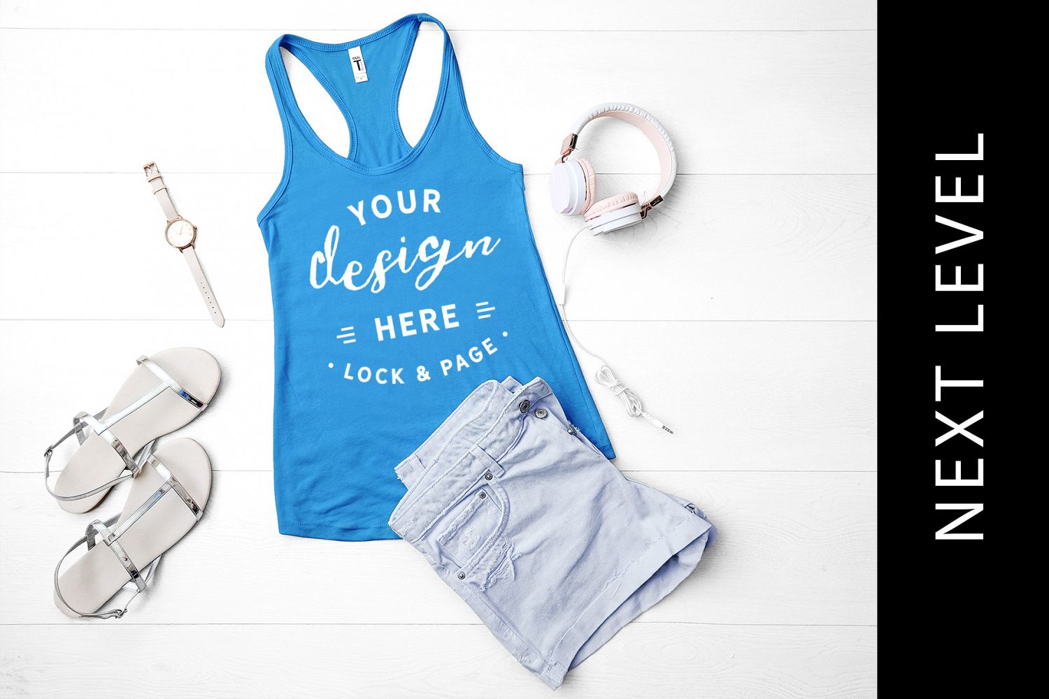 Turquoise Next Level 1533 Tank Top Mockup Girls Flat Lay example image 1