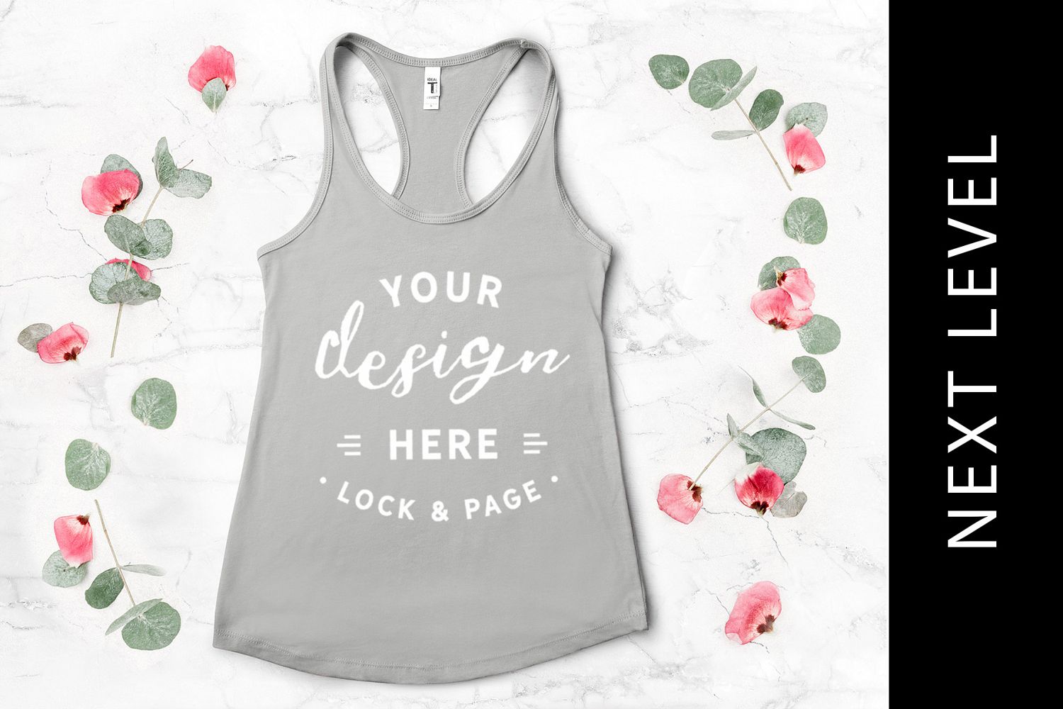 Floral Tank Top Mockup Silver Next Level 1533 Racerback Vest