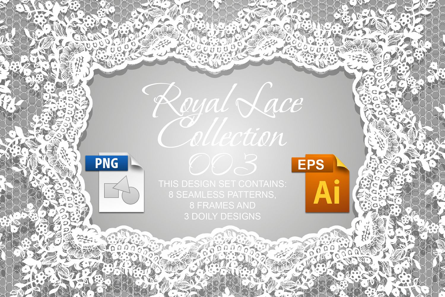 - 3 doily designs (both EPS 10 and PNG 300 dpi with transparent background formats)