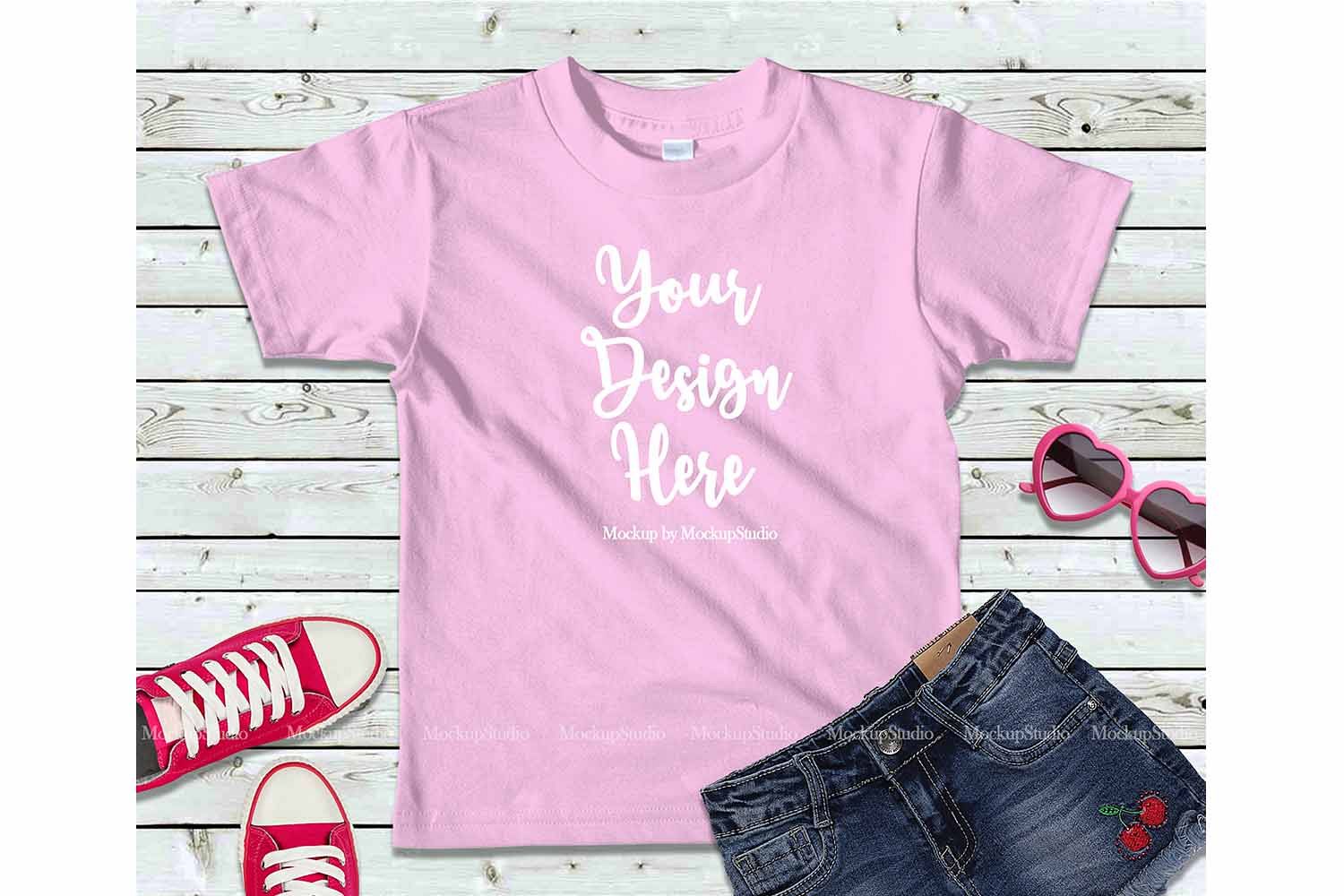 Kids Light Pink Tshirt Mock Up Girls Teen Flat Lay Display example image 1